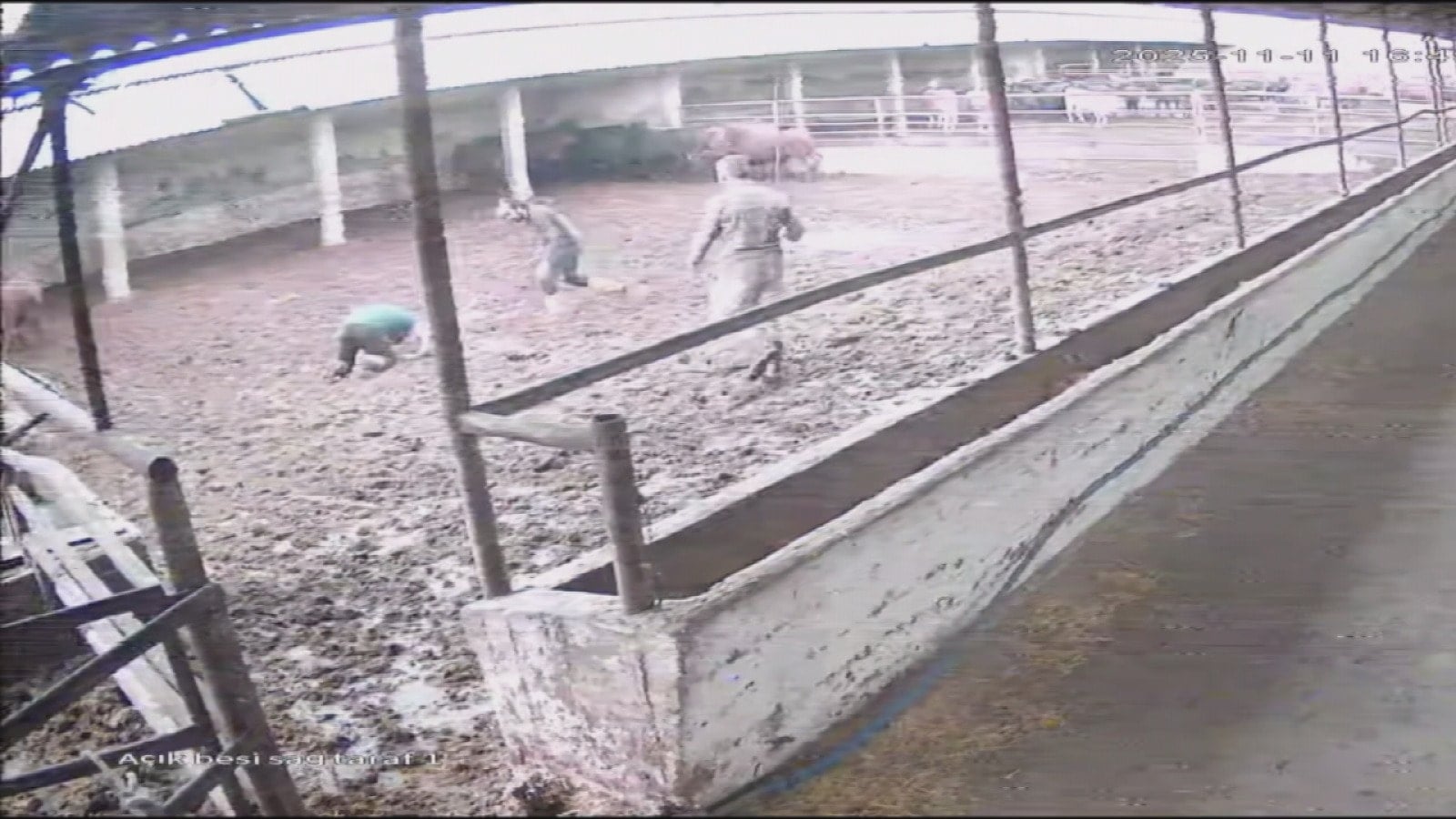 Amasya’nın Suluova ilçesinde büyükbaş hayvan yetiştiriciliği yapılan bir çiftlikte çalışan besici, hayvanları bir araya toplamak istediği sırada boğanın saldırısına uğradı. Boğanın aniden besicinin üzerine atladığı ve boynuz darbesiyle yere savurduğu anlar, çiftliğin güvenlik kamerası tarafından kaydedildi.