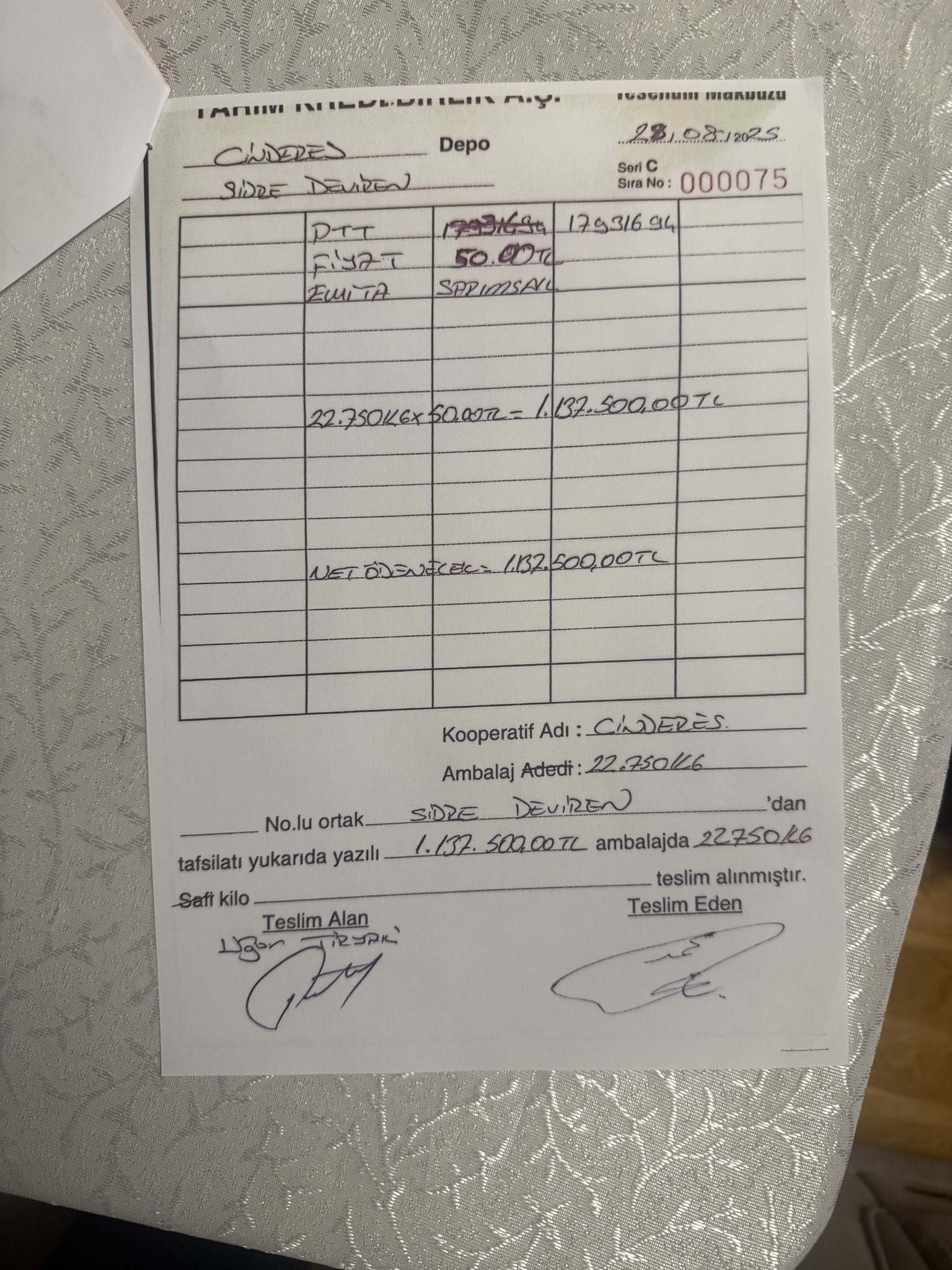 Ama belgeler gösteriyor ki, Tarım Kredi Tedarik ve Üretim A.Ş. — ki bu şirket doğrudan Tarım Kredi Kooperatifleri Merkez Birliği’ne bağlı ve dolayısıyla Tarım Bakanlığı’na bağlıdır — Suriye/Cinderes’ten Sidre Deviren adlı kişiden tonlarca sarımsak almış.