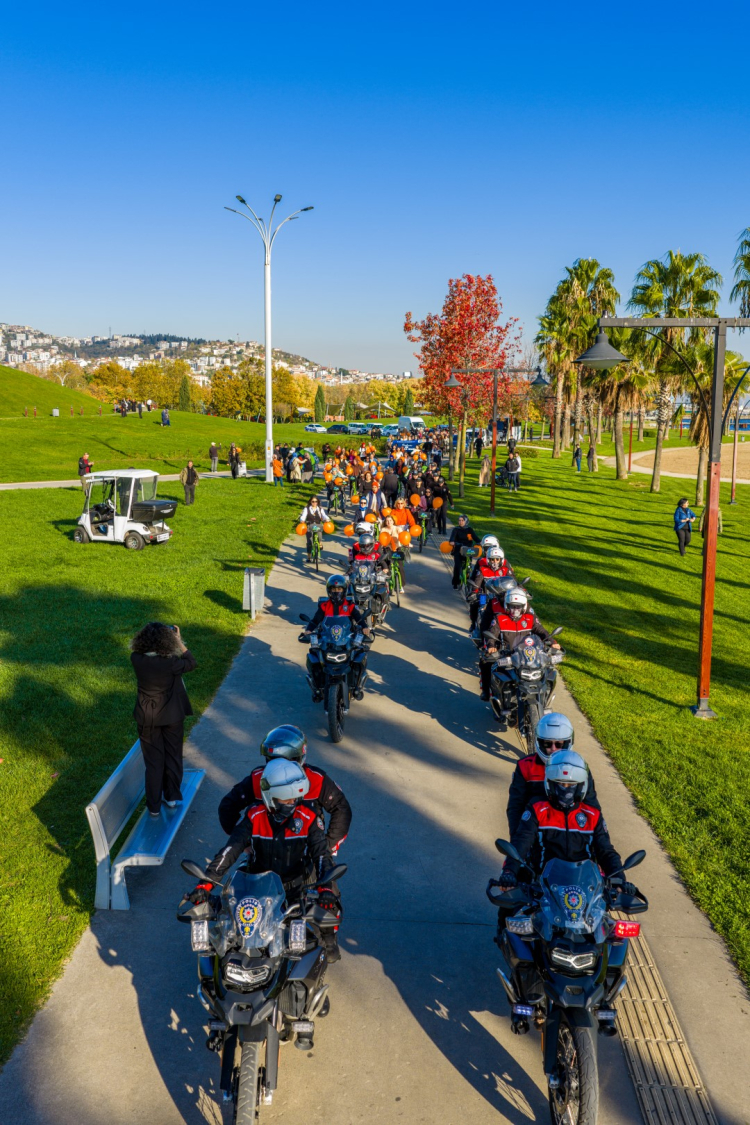 KOCAELİ (İGFA) – Kocaeli’deki etkinlik kadınlara yönelik şiddete dikkat çekmek için farkındalık yürüyüşü ve bisiklet korteji ile başladı. Düzenlenen yürüyüşe kadın yunus polisleri de eşlik etti.