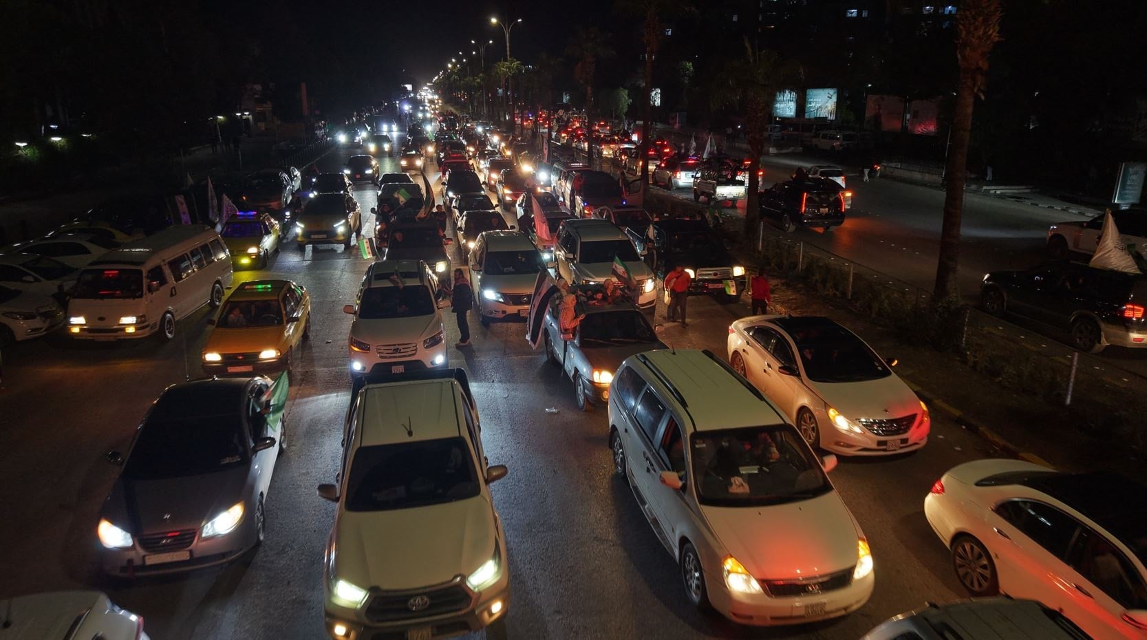 Suriye’nin başkenti Şam’da binlerce kişi, 61 yıllık Baas rejiminin sona ermesinin birinci yıl dönümü dolayısıyla sokaklara döküldü. Araç konvoyları oluşturan kalabalıklar, Suriye bayraklarıyla şehir turu atarak kutlama yaptı.